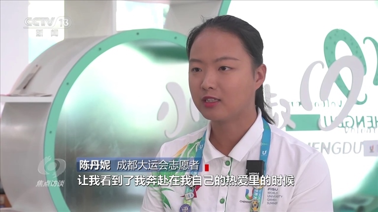 陳丹妮:“參與志愿服務(wù)的每一天我沒有覺得特別累,這是成都大運(yùn)會(huì)帶給我的一次體驗(yàn),讓我看到了我奔赴在自己的熱愛里的時(shí)候,那種熱愛帶給我的力量,看到他們的笑容,這一刻所有人都會(huì)覺得所有的辛苦都很值得?!?/p>