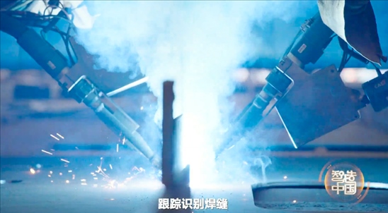機器人測量鋼板尺寸和位置,大腦根據(jù)數(shù)據(jù)迅速發(fā)出指令,焊槍上的激光感應(yīng)器跟蹤識別焊縫,實時糾偏。