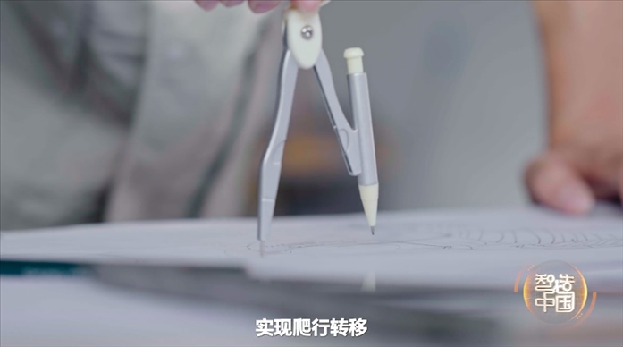 研發(fā)團隊一籌莫展的時候,一位工程師用圓規(guī)畫圖,猛然受到啟發(fā)。就像圓規(guī)一樣,他們也讓大型機械臂的兩只手當(dāng)“腳”,互為支點,交替切換向前移動,實現(xiàn)爬行轉(zhuǎn)移。