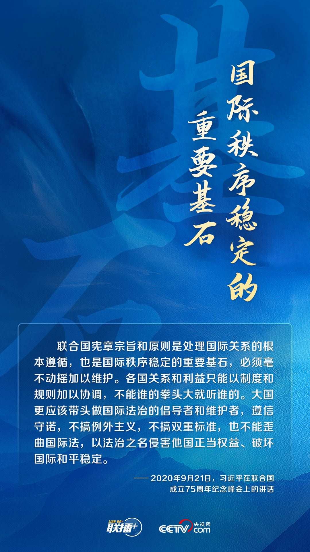 世界上只有一個體系,就是以聯(lián)合國為核心的國際體系;只有一套規(guī)則,就是以聯(lián)合國憲章為基礎(chǔ)的國際關(guān)系基本準(zhǔn)則。中國始終以實際行動踐行聯(lián)合國憲章宗旨和原則,持續(xù)為人類文明和進(jìn)步事業(yè)貢獻(xiàn)中國方案,承擔(dān)大國責(zé)任,展現(xiàn)大國擔(dān)當(dāng)。