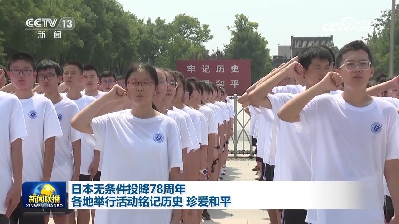 央視網(wǎng)消息(新聞聯(lián)播):今天(8月15日)是日本宣布無(wú)條件投降78周年的日子,各地舉行形式多樣的活動(dòng)緬懷先烈、銘記歷史、珍愛(ài)和平。
