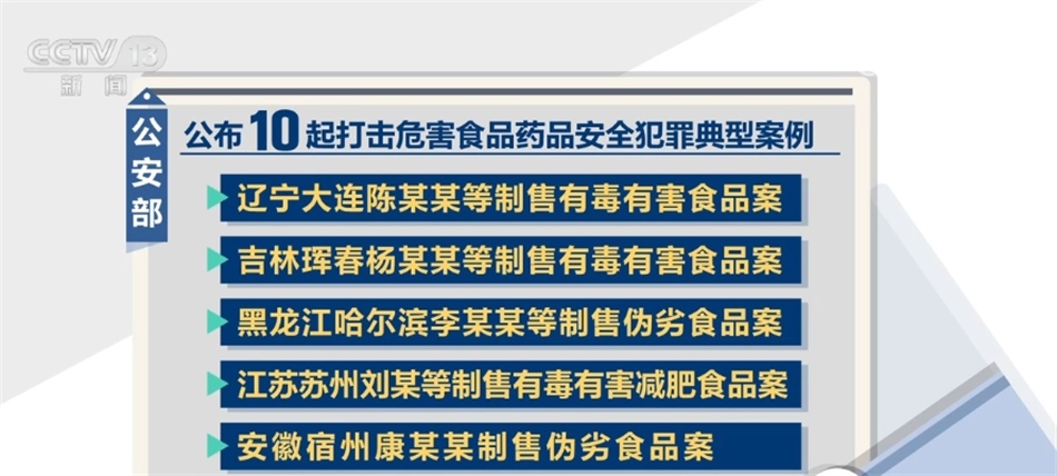 當(dāng)天,公安部還公布了10起打擊危害食品藥品安全犯罪典型案例,涵蓋農(nóng)產(chǎn)品、水產(chǎn)品、肉制品、減肥產(chǎn)品、保健食品等食品領(lǐng)域,以及治療風(fēng)濕、腰腿疼痛、哮喘等老年人常見(jiàn)疾病藥品領(lǐng)域,具有一定的典型性、代表性。案件中有的非法添加化學(xué)藥物,有的濫用食品添加劑,有的添加化學(xué)藥成分冒充所謂“純中藥”,犯罪手法隱蔽、性質(zhì)惡劣,給人民群眾身體健康帶來(lái)嚴(yán)重威脅。