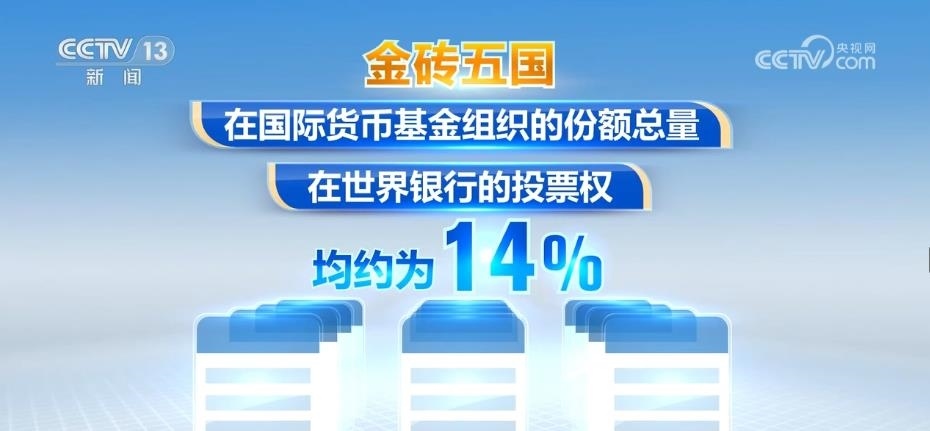 金磚五國的人口總和、國土面積、經(jīng)濟(jì)總量、貿(mào)易總額在全球的占比分別約為42%、26%、25%和18%。五國在國際貨幣基金組織的份額總量和在世界銀行的投票權(quán)均約為14%。