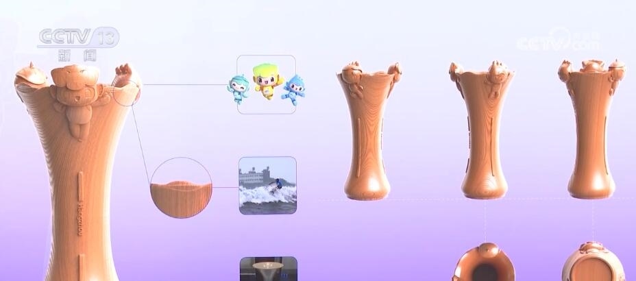 頒獎(jiǎng)托盤(pán)設(shè)計(jì)靈感則來(lái)源于微風(fēng)中波動(dòng)的西湖水面,結(jié)合本屆亞運(yùn)會(huì)核心圖形“潤(rùn)澤”中的飄逸絲帶意向,整體給人流動(dòng)的感覺(jué)。