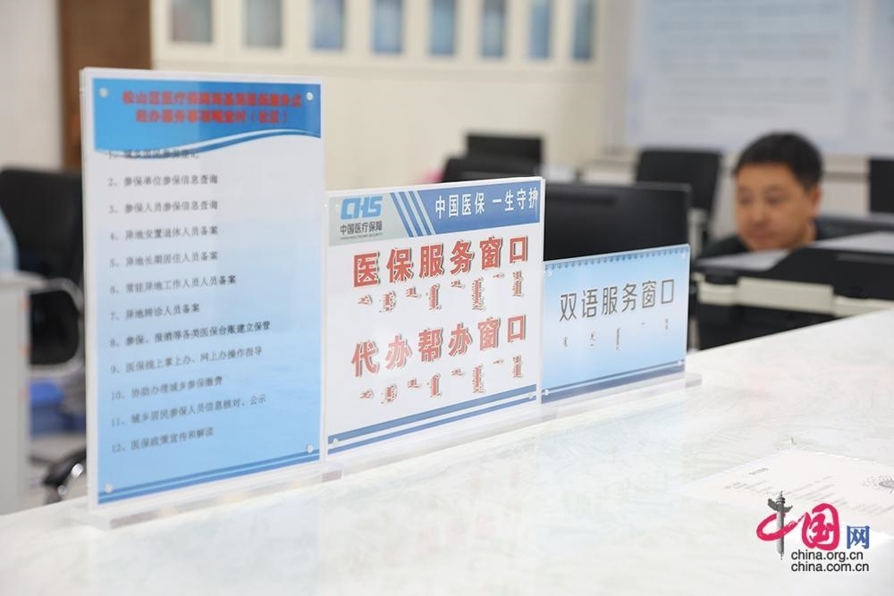 臨潢家園社區(qū)服務(wù)于轄區(qū)各民族居民,在服務(wù)中心內(nèi)搭建了公共服務(wù)平臺,竭力促進民族團結(jié)進步,維護社區(qū)的和諧穩(wěn)定。圖為臨潢家園社區(qū)便民服務(wù)中心內(nèi)的雙語服務(wù)窗口。中國網(wǎng)記者 倫曉璇 攝