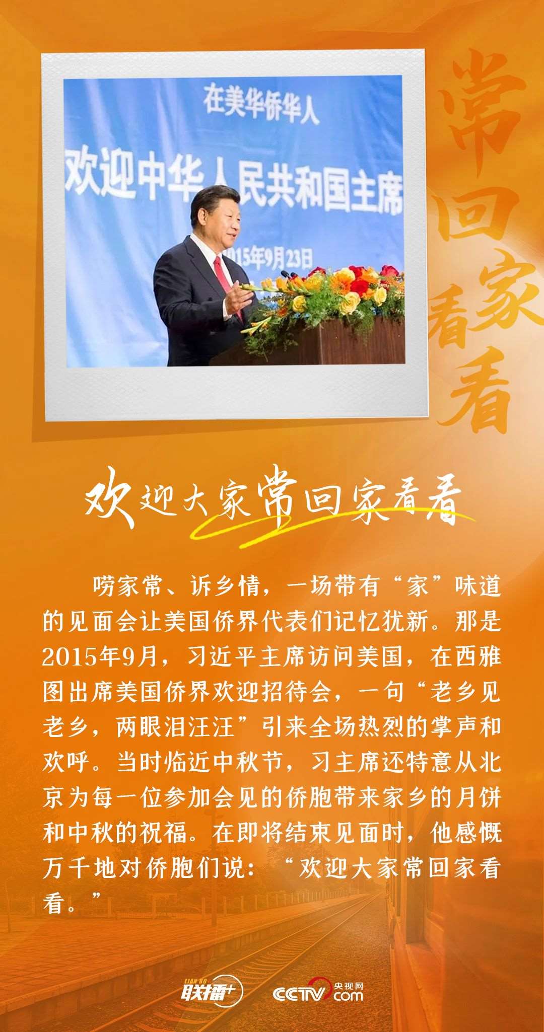 擔(dān)任福州市委書記期間創(chuàng)造性地提出了“以僑引僑、以僑引臺”等招商引資思路,訪問美國期間為僑胞送去月餅,在津巴布韋發(fā)表署名文章講述“非愛不可”媽媽團體的故事,在廣東汕頭同市民群眾交流肯定華僑貢獻......從地方到中央,習(xí)近平與“僑”的緣分頗為深長,他對僑情有深入了解,對僑界有深厚感情,與廣大僑胞留下了許多暖心故事。