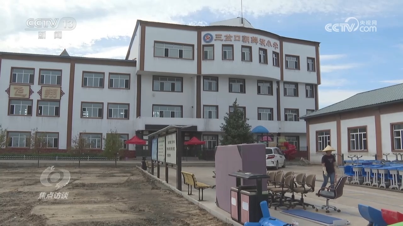 8月25日夜里,黑龍江東寧市突降大雨,三岔口朝鮮族小學(xué)的校長(zhǎng)金美聲和兩名老師連夜趕到學(xué)校。經(jīng)過(guò)搶收,之前晾曬的教學(xué)用具和生活用品沒(méi)有再被雨水浸泡。