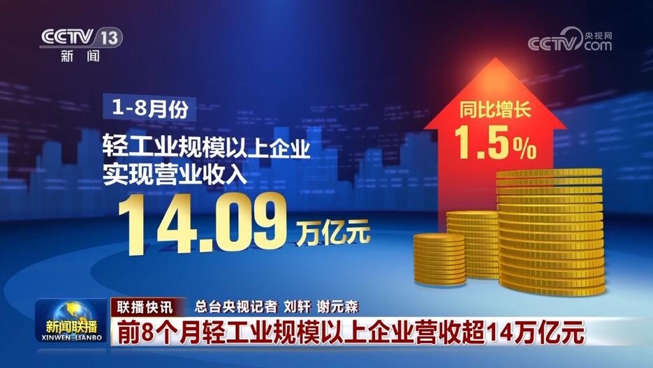 前8個月輕工業(yè)規(guī)模以上企業(yè)營收超14萬億元