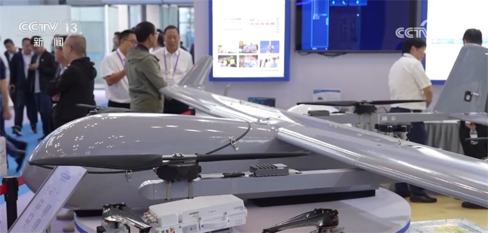 ?????? 在展會(huì)的未來產(chǎn)業(yè)館,“上天入海”的高科技新產(chǎn)品讓眾多觀眾駐足體驗(yàn)?,F(xiàn)在您看到的就是一架垂直起降式的衛(wèi)星通信無人機(jī),它搭載了國產(chǎn)的亞太衛(wèi)星技術(shù),目前已經(jīng)被廣泛應(yīng)用于應(yīng)急救援、公安消防、水利農(nóng)林等各個(gè)領(lǐng)域,這個(gè)機(jī)器的翼展只有六米,可以適應(yīng)各種地形的起降。?
