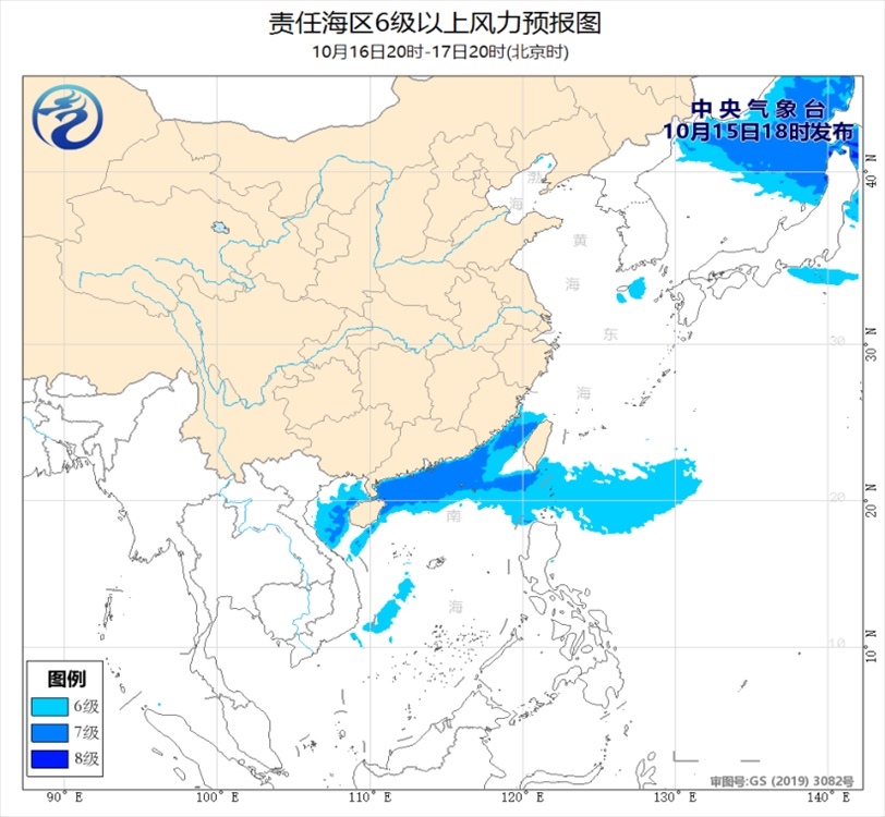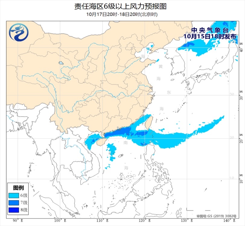15日夜間至18日白天,臺(tái)灣海峽、臺(tái)灣以東洋面、巴士海峽、南海北部和中部海域、北部灣、瓊州海峽將有6~7級(jí)、陣風(fēng)8~9級(jí)的偏北或東北風(fēng)。