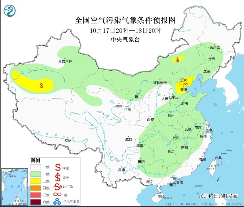 16日至18日上午,華北中南部等地大氣擴(kuò)散條件一般,其中17日夜間至18日早晨,霾天氣逐漸向北發(fā)展,華北中部有輕至中度霾。18日午后起,受冷空氣和降水影響,區(qū)域霾天氣減弱消散。19日至21日,區(qū)域大部大氣擴(kuò)散條件較好。