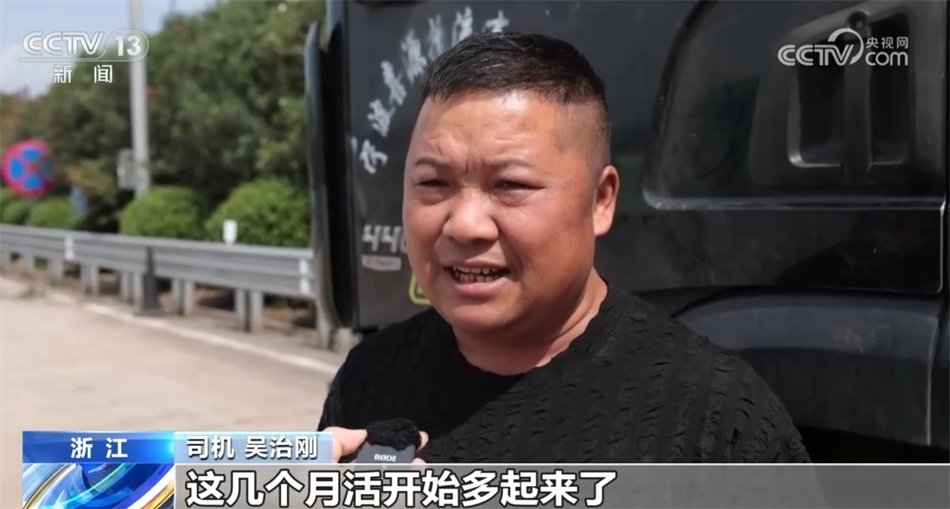 司機(jī) 吳治剛:我是義烏跑寧波港專(zhuān)線的,8月份跑了不到30趟,9月份還可以,跑了39趟。這幾個(gè)月活多起來(lái)了,越來(lái)越多了。