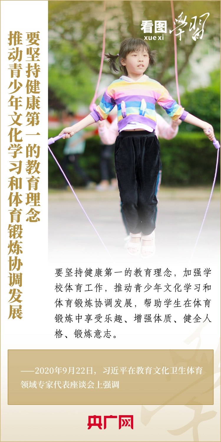 少年強(qiáng)則中國(guó)強(qiáng),體育強(qiáng)則中國(guó)強(qiáng)。習(xí)近平總書(shū)記十分關(guān)心關(guān)注青少年健康成長(zhǎng),多次強(qiáng)調(diào)要堅(jiān)持健康第一的教育理念,加強(qiáng)學(xué)校體育工作,推動(dòng)青少年文化學(xué)習(xí)和體育鍛煉協(xié)調(diào)發(fā)展。一起來(lái)學(xué)習(xí)!