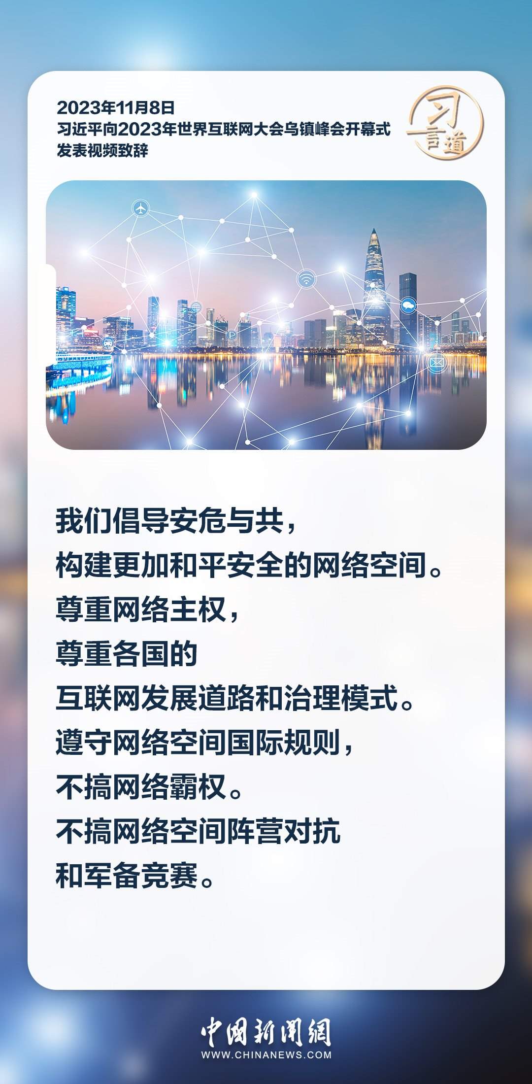 11月8日上午,國家主席習近平向2023年世界互聯(lián)網(wǎng)大會烏鎮(zhèn)峰會開幕式發(fā)表視頻致辭。習近平指出——