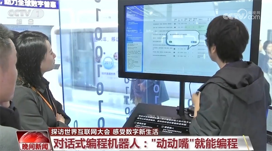 在此次互聯(lián)網(wǎng)之光博覽會(huì)的數(shù)字技術(shù)展區(qū),有數(shù)十家科技企業(yè)都展出了人工智能大語言模型應(yīng)用產(chǎn)品,覆蓋了日常生活、生產(chǎn)制造、安全防護(hù)等多個(gè)行業(yè)領(lǐng)域。這是一款對(duì)話式編程機(jī)器人,通過基于人工智能大模型的應(yīng)用平臺(tái),非專業(yè)人士不用學(xué)寫代碼,只要“動(dòng)動(dòng)嘴”就能編寫相關(guān)應(yīng)用程序,并通過指令來完成多種日常看似繁瑣的操作。