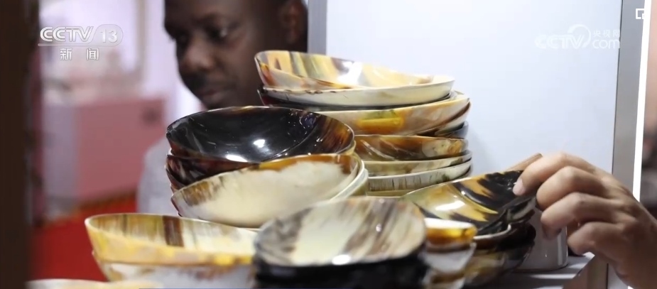 不僅是“回頭客”收獲滿(mǎn)滿(mǎn),“頭回客”烏干達(dá)商人蒂莫西表示感到十分驚喜。他是第一次來(lái)參展,只拿到了3層貨架的展位。但是,來(lái)自烏干達(dá)的牛角梳等牛角手工藝品,吸引了不少訪客駐足詢(xún)問(wèn)。