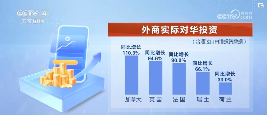 盡管部分指標(biāo)出現(xiàn)波動(dòng),但外商來(lái)華投資熱度不減。加拿大、英國(guó)、法國(guó)、瑞士、荷蘭實(shí)際對(duì)華投資同比分別增長(zhǎng)110.3%、94.6%、90%、66.1%、33%。
