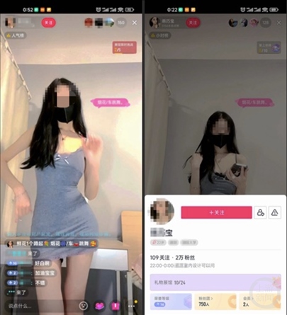 當有網(wǎng)友送上規(guī)定禮物后,“丫頭XXX”還在連麥男性的建議下將黑色短裙換成了桃紅色短裙,并跟隨音樂扭動跳舞,做出了撩發(fā)、摸胸、扭胯等動作。