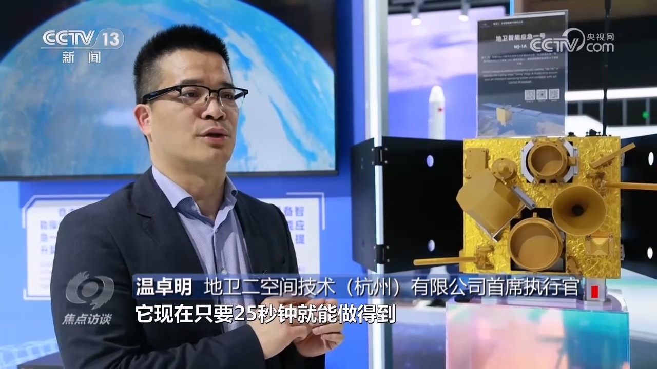 地衛(wèi)二空間技術(shù)(杭州)有限公司首席執(zhí)行官溫卓明:“這是一個(gè)聰明的衛(wèi)星,傳統(tǒng)的衛(wèi)星6個(gè)小時(shí)才能干完的事情,它只要25秒鐘就能做得到,而且原來可能要5000個(gè)工程師干的活,現(xiàn)在1個(gè)小時(shí)它就能做完。它是怎么能做到的?因?yàn)槲覀儼讶斯ぶ悄芊诺搅颂?。?/p>