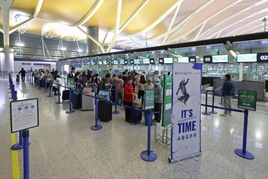 11月23日,一批游客從上海出發(fā)前往長白山參加“冰雪嘉年華”。新華社記者陳愛平 攝
