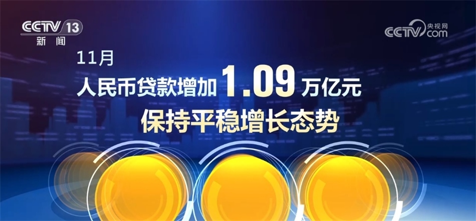 11月當月人民幣貸款增加1.09萬億元,保持平穩(wěn)增長態(tài)勢。