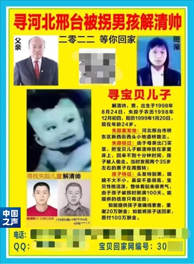 1999年1月20日,大寒,河北邢臺(tái),剛滿百天的男嬰解清帥被人販子偷走。9000多個(gè)日夜過去,今年11月28日,解克鋒等到了他這一生最想聽到的消息。