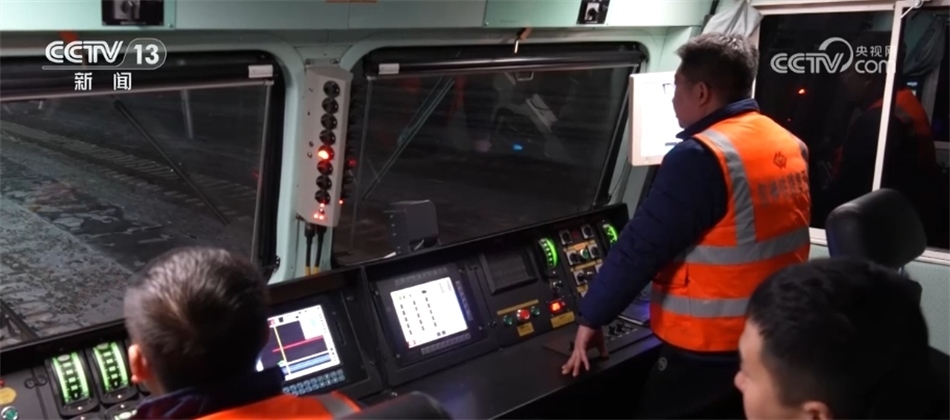 總臺央視記者 張叢婧:我現(xiàn)在是在一列滿載著將近一萬噸煤炭的貨運(yùn)火車上,正在駛往黃驊港方向。這列車從神東礦區(qū)裝滿煤之后,一路往東,現(xiàn)在到達(dá)了它途中的第一個編組站,在這里會進(jìn)行更換車頭的工作,因?yàn)檫@往后的路會更加崎嶇難走,我們可以看到現(xiàn)在路上是有積雪,所以需要在這換一個更大功率的車頭,才能夠帶得動它身后這一百多節(jié)車廂去走這段更艱難的路?,F(xiàn)在隨著這個車緩緩進(jìn)站,馬上就要去進(jìn)行編組任務(wù)。