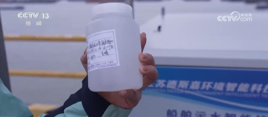 您看,這會(huì)在江面上不少大貨船旁都有一艘小船緊挨著它,這艘小船是污染物集中接收船,就相當(dāng)于長(zhǎng)江上的“垃圾回收站”,連接兩艘船的管道后,船上生活污水即可被回收到接收裝置中。您看,我手里這杯清澈的水就是集中處理后的污水,目前達(dá)到了一級(jí)A類的標(biāo)準(zhǔn),也將會(huì)被重新直排回長(zhǎng)江。?