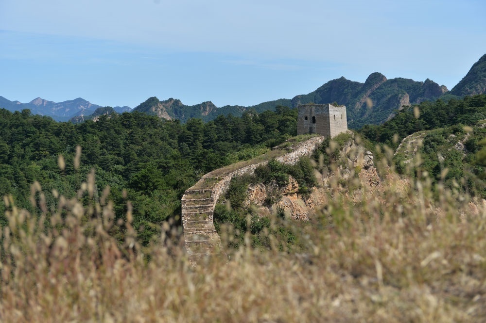 河北省遷西縣榆木嶺長(zhǎng)城景色(無(wú)人機(jī)照片,2023年7月9日攝)。