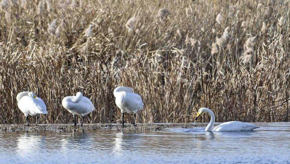 圖為天鵝在密云水庫(kù)流域太師屯小南河內(nèi)休憩。 新華社記者 李欣 攝