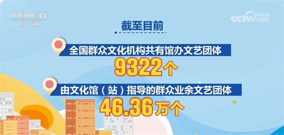 與此同時,各地積極引導(dǎo)帶動農(nóng)民群眾在文化生活中當(dāng)主角、唱大戲,統(tǒng)計數(shù)據(jù)顯示,截至目前,全國群眾文化機(jī)構(gòu)共有館辦文藝團(tuán)體9322個,由文化館(站)指導(dǎo)的群眾業(yè)余文藝團(tuán)體46.36萬個。