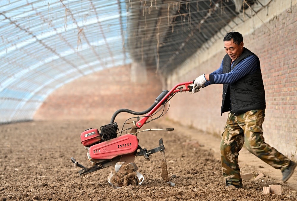 在天津市西青區(qū)辛口鎮(zhèn)水高莊村,農(nóng)戶在修繕后的大棚內(nèi)勞作(12月12日攝)。新華社記者 李然 攝