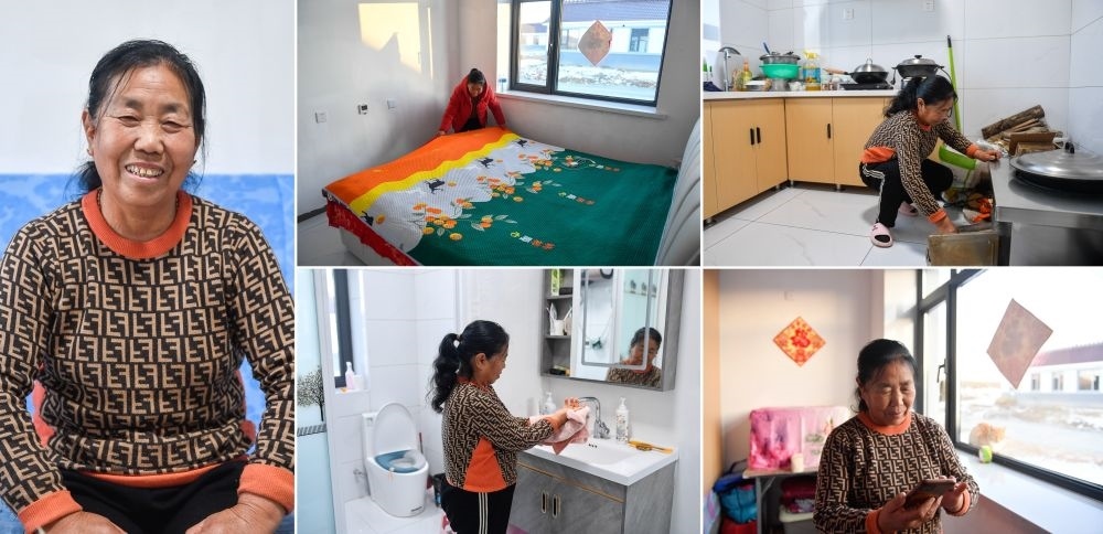 吉林省舒蘭市開(kāi)原鎮(zhèn)新開(kāi)村村民徐中仁在新房子中的生活場(chǎng)景(12月7日攝,拼版照片)。徐中仁說(shuō),“土炕”變“大床”,WIFI、自來(lái)水、室內(nèi)馬桶一應(yīng)俱全,新房子讓她體驗(yàn)上了“城里的生活”。新華社記者 許暢 攝