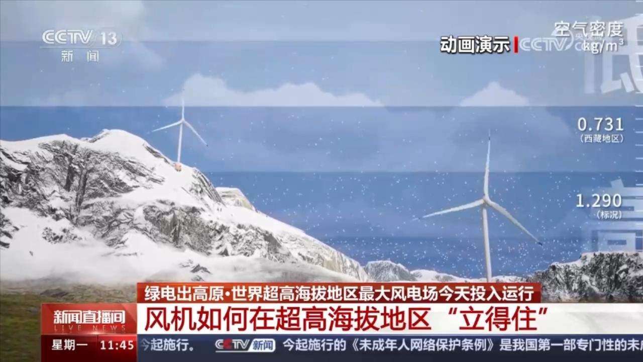 央視網(wǎng)消息:1月1日,世界超高海拔地區(qū)最大的風力發(fā)電廠——那曲歐瑪亭嘎100兆瓦風電項目正式投入運行,一年可以向那曲市送電2億度,滿足23萬人一年的用電需求,還能減排二氧化碳20萬噸。