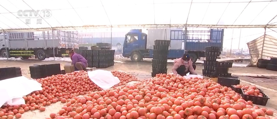 在當(dāng)?shù)氐囊患覍I(yè)合作社,工人們正在忙著分揀從農(nóng)戶們手中收上來的西紅柿,精心包裝后將被運往全國各地。