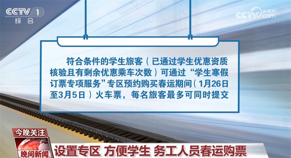 1月10日,鐵路12306還推出了春運期間學(xué)生、務(wù)工人員專區(qū)預(yù)約購票功能。目前,火車票預(yù)售期為15天。而學(xué)生、務(wù)工人員通過鐵路12306專區(qū)購買,可提交開車前17天(含)以上的出行購票需求。