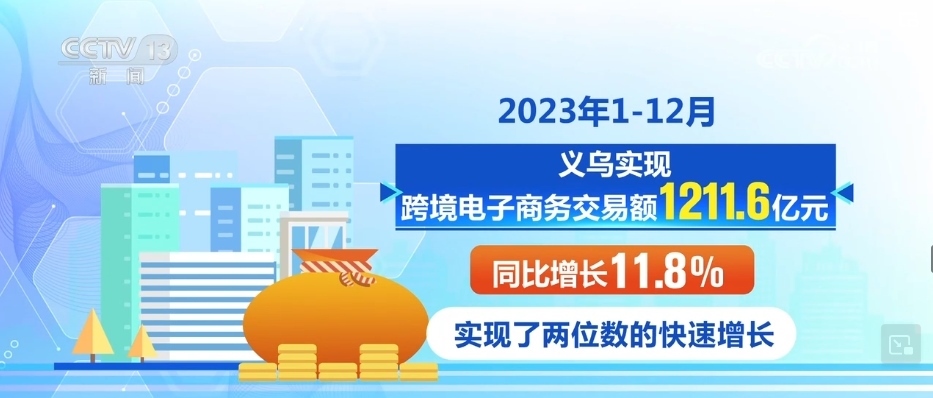 2023年1—12月,義烏實(shí)現(xiàn)跨境電子商務(wù)交易額1211.6億元,同比增長11.8%,實(shí)現(xiàn)了兩位數(shù)的快速增長。