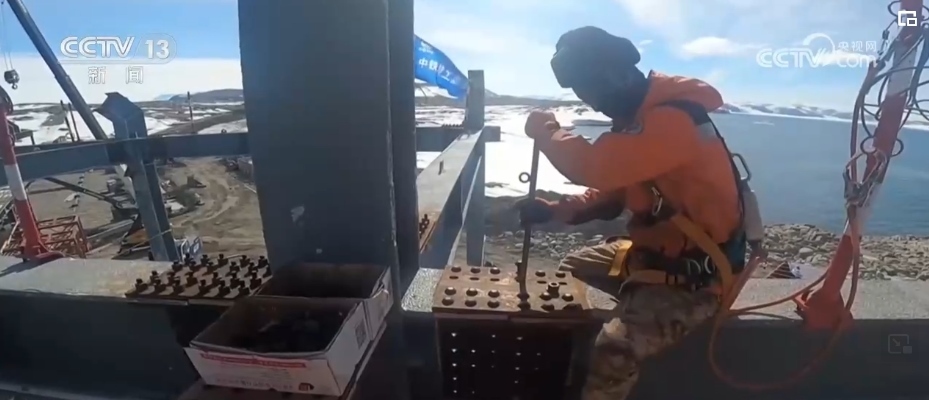 因?yàn)槟蠘O不具備現(xiàn)場(chǎng)焊接的條件,新站的鋼結(jié)構(gòu)搭建是通過(guò)7萬(wàn)套螺栓連接而成的。為了加快建設(shè)進(jìn)度,全站104名隊(duì)員全都參與到了現(xiàn)場(chǎng)的施工作業(yè)中。