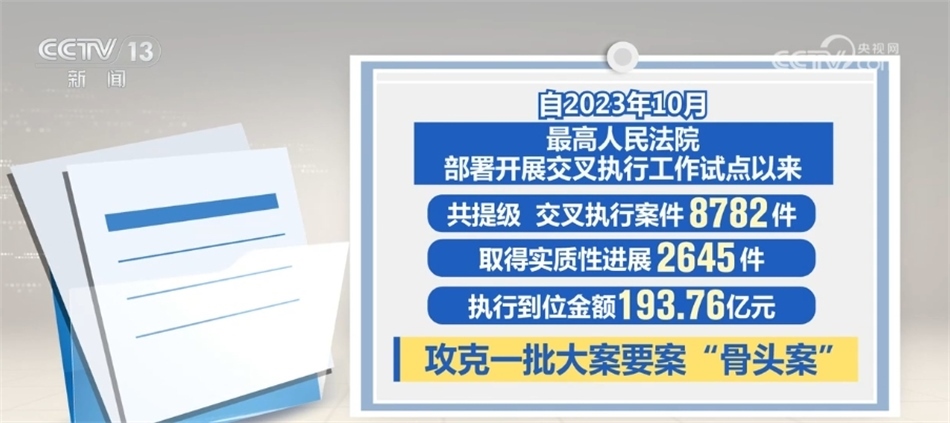 最高人民法院介紹,執(zhí)行難中常見被執(zhí)行人是當(dāng)?shù)刂匾髽I(yè)、納稅大戶,甚至是重點(diǎn)國(guó)企或行政部門等情況。交叉執(zhí)行就是要讓接受指定的法院在不受牽絆、沒有包袱、完全依法自主的條件下力推案件執(zhí)行。據(jù)統(tǒng)計(jì),開展交叉執(zhí)行工作試點(diǎn)以來(lái),共提級(jí)、交叉執(zhí)行案件8782件,取得實(shí)質(zhì)性進(jìn)展2645件,執(zhí)行到位金額193.76億元,攻克了一批大案要案“骨頭案”。最高人民法院要求,上級(jí)法院發(fā)現(xiàn)原執(zhí)行法院存在消極執(zhí)行、拖延執(zhí)行等執(zhí)行不力情形,發(fā)現(xiàn)違紀(jì)違法問(wèn)題線索的,應(yīng)當(dāng)嚴(yán)肅依紀(jì)依法查處、追究責(zé)任。