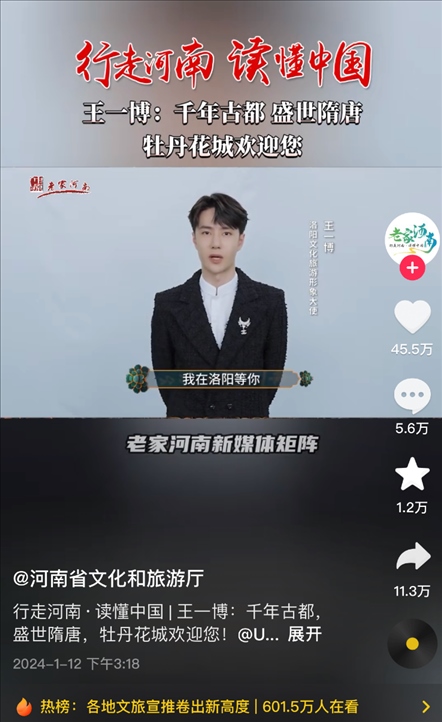 據(jù)悉,1月11日當(dāng)晚,山西文旅連夜追趕河南文旅步伐,從晚上8:00到第二天早上6:35,一共發(fā)布57條視頻,最快的時(shí)候一小時(shí)發(fā)了12條……