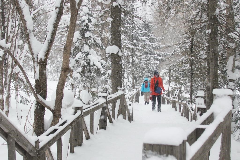 在黑龍江大海林林業(yè)局有限公司雙峰林場(chǎng),游客在森林公園游玩。新華社發(fā)(張春祥攝)