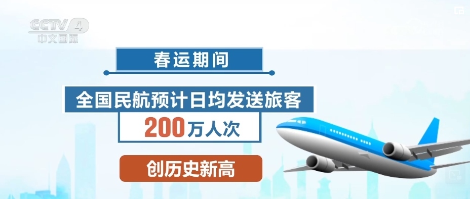 春運(yùn)期間,全國民航預(yù)計(jì)日均發(fā)送旅客200萬人次,創(chuàng)歷史新高。多家航司加密熱門方向航班,日均保障航班將達(dá)到1.65萬班。其中,從1月26日到3月5日,東航計(jì)劃投入客運(yùn)飛機(jī)783架,每天執(zhí)行客運(yùn)航班3280班,同比增42%。旗下的全部4架C919大飛機(jī)將首度服務(wù)春運(yùn),在京滬、滬蓉航線執(zhí)飛。