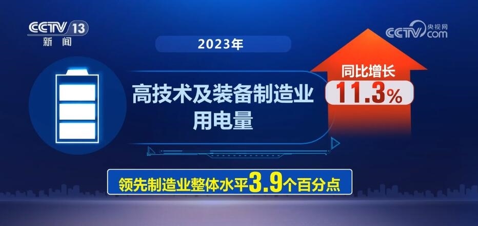 來(lái)自中國(guó)電力企業(yè)聯(lián)合會(huì)數(shù)據(jù)顯示,2023年,高技術(shù)及裝備制造業(yè)用電量同比增長(zhǎng)11.3%,領(lǐng)先制造業(yè)整體水平3.9個(gè)百分點(diǎn)。