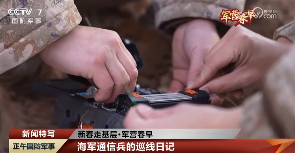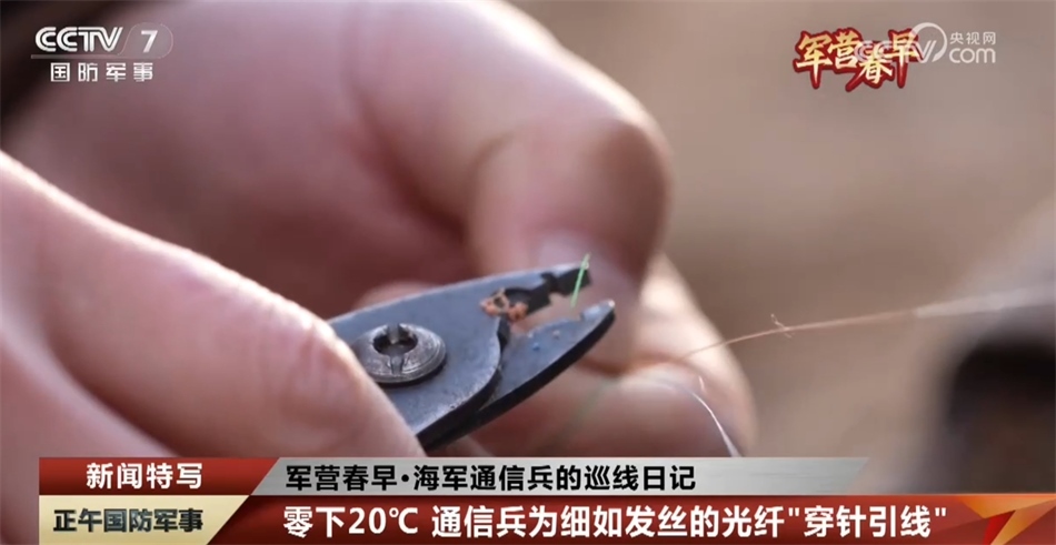 海軍某總站 鄭乾:因?yàn)楣饫w是玻璃材質(zhì)的,冬天特別寒冷,就會(huì)導(dǎo)致光纖特別容易斷裂,特別是在光纖切割刀切割光纖的時(shí)候,一不小心就會(huì)砸斷,有可能出現(xiàn)強(qiáng)行熔接的情況,一旦出現(xiàn)這種情況,任務(wù)就(可能)因?yàn)椋〝?shù)據(jù))無法使用,任務(wù)就會(huì)無法開展、失敗了。