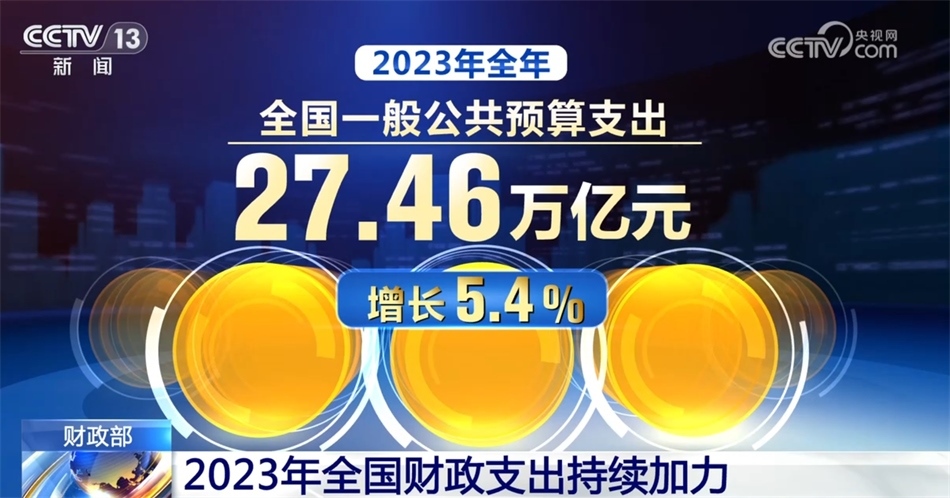 2023年,財(cái)政收入保持恢復(fù)性增長(zhǎng)態(tài)勢(shì),財(cái)政支出持續(xù)加力。具體來看,去年年初,財(cái)政赤字率按3%安排。同時(shí),為支持災(zāi)后恢復(fù)重建和提升防災(zāi)減災(zāi)救災(zāi)能力,去年四季度增發(fā)1萬億元國(guó)債,全部通過轉(zhuǎn)移支付安排給地方。2023年全年,全國(guó)一般公共預(yù)算支出27.46萬億元,增長(zhǎng)5.4%。社會(huì)保障和就業(yè)、教育、科學(xué)技術(shù)、農(nóng)林水、城鄉(xiāng)社區(qū)等重點(diǎn)支出領(lǐng)域保障有力。