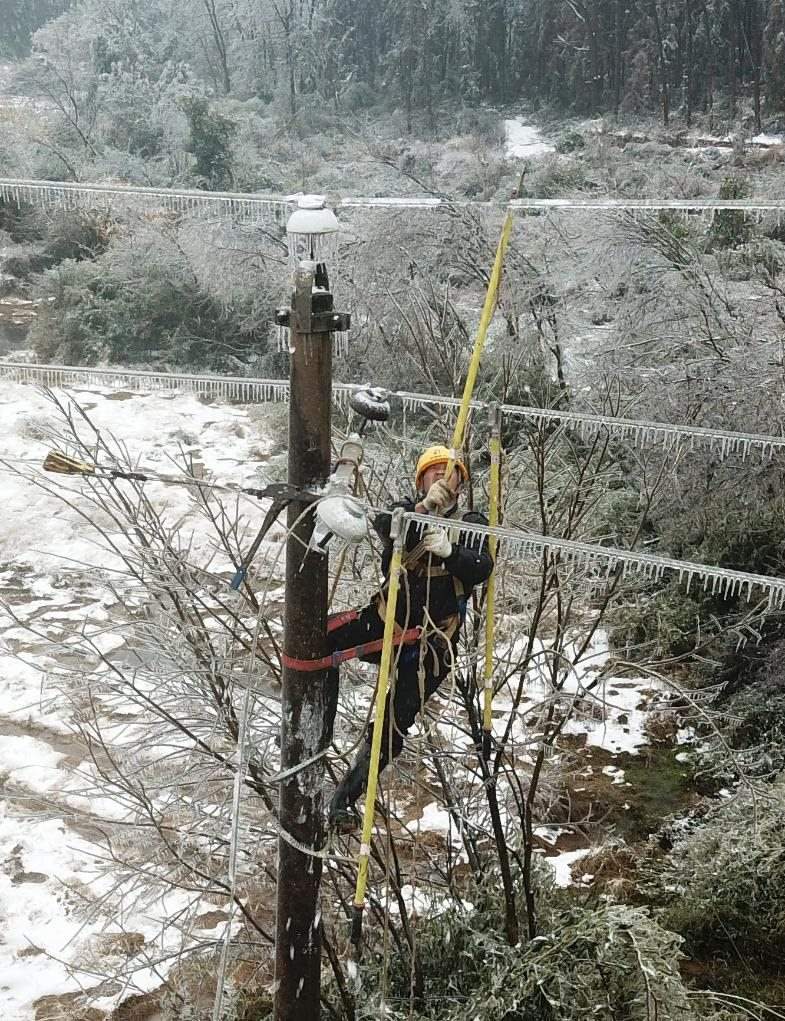 4日深夜,位于武漢市江岸區(qū)花惠社區(qū)門口的樹木覆冰折斷,壓斷了位于樹下的電線桿,造成10千伏三眼橋線故障停電。收到消息后,國網武漢供電公司搶修人員姚志飛和他的同事趕到現(xiàn)場。姚志飛和同事們頂著風雪,熟練地進行著發(fā)電車的接電工作。不一會兒,附近居民的供電恢復正常。此后,經過他們一夜奮戰(zhàn),新的電線桿立起,搶修完成。