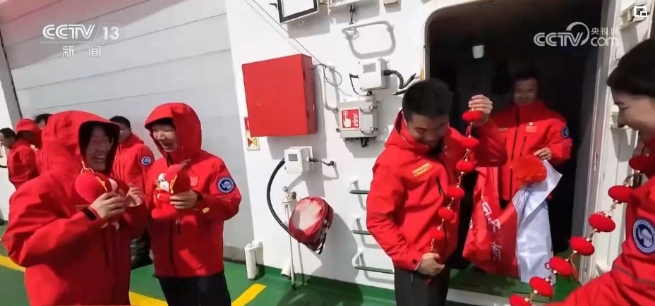 每逢佳節(jié)倍思親,龍年新年到了,考察隊(duì)員們排隊(duì)打電話、一起錄視頻,把祝福傳回萬(wàn)里之外的國(guó)內(nèi)。