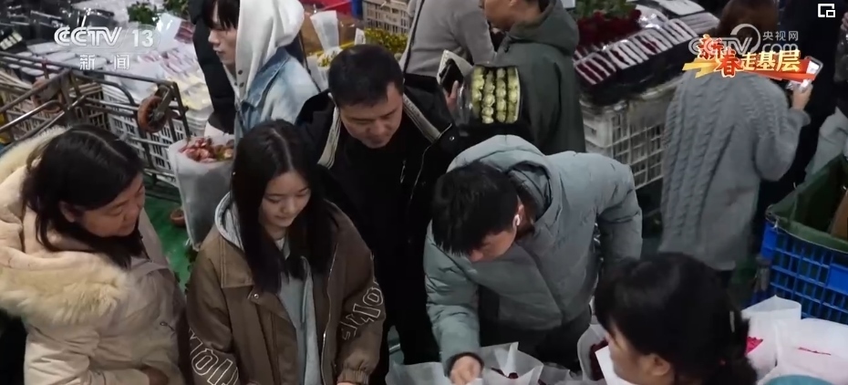 春節(jié)期間五彩繽紛、種類繁多的年宵花成為主角,玫瑰、臘梅、郁金香都是市場“寵兒”。這幾天,周琦他們的日訂單量已經從2500單增加到3000多單。