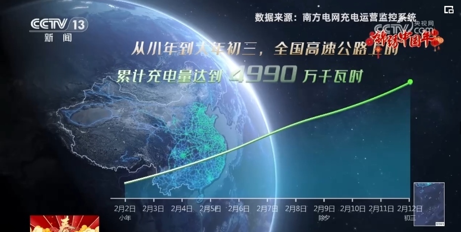這個(gè)春節(jié),人們駕駛著新能源汽車,繪制出了一幅“綠色”的春節(jié)旅行軌跡圖。2.1萬(wàn)個(gè)充電樁遍布各地的高速公路,從小年到大年初三,全國(guó)高速公路上的累計(jì)充電量達(dá)到4990萬(wàn)千瓦時(shí)。