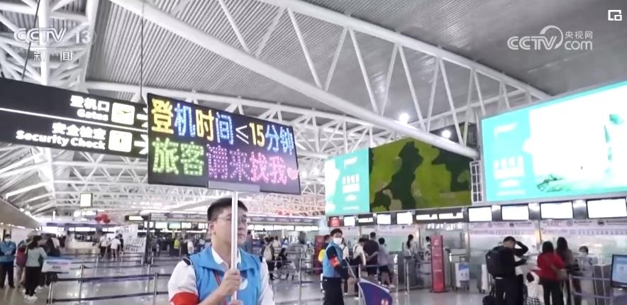 還有15分鐘登機(jī),這在平時(shí)不算晚。可在初八的出港高峰里,如果沒(méi)有志愿者的及時(shí)指引,旅客就很有可能錯(cuò)過(guò)飛機(jī)。